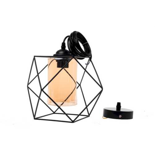 Pendant Iron E27 200×200 2.5m cable black smoky glass