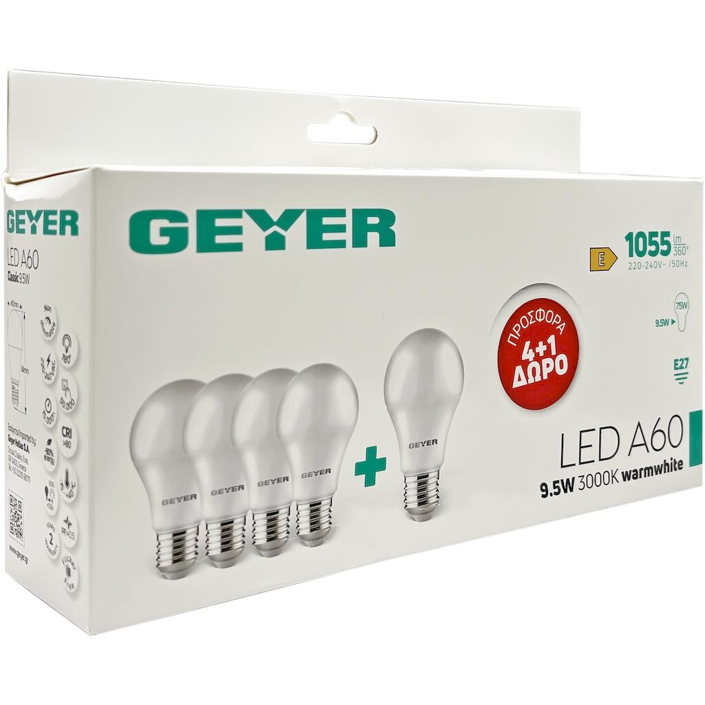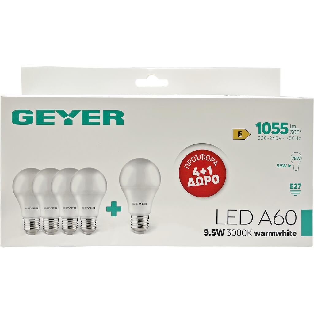 LED A60 9.5W E27 3000K 1055lm 4+1 FREE
