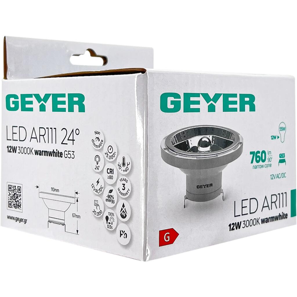 LED AR111 12W G53 3000K 760lm 24° 12V AC/DC