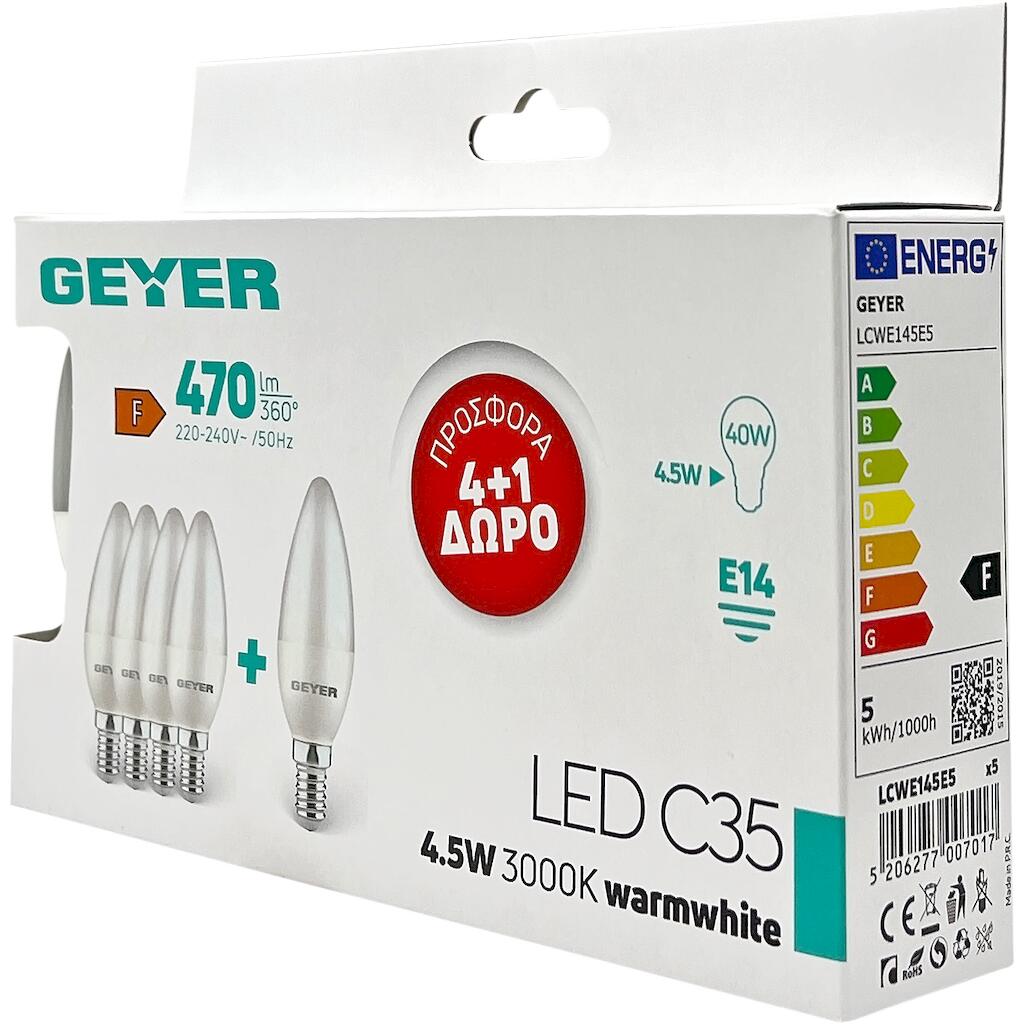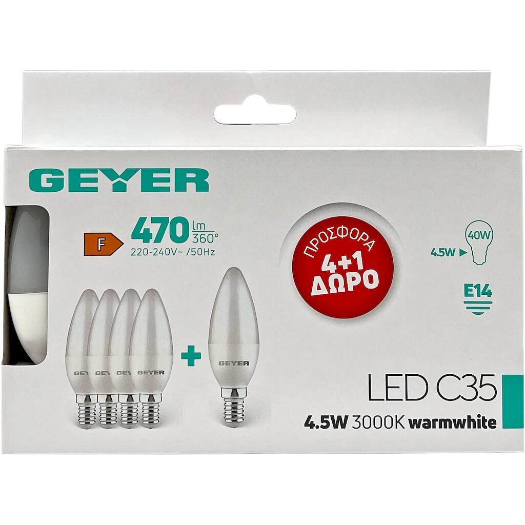 LED C35 4.5W E14 3000K 470lm 4+1FREE