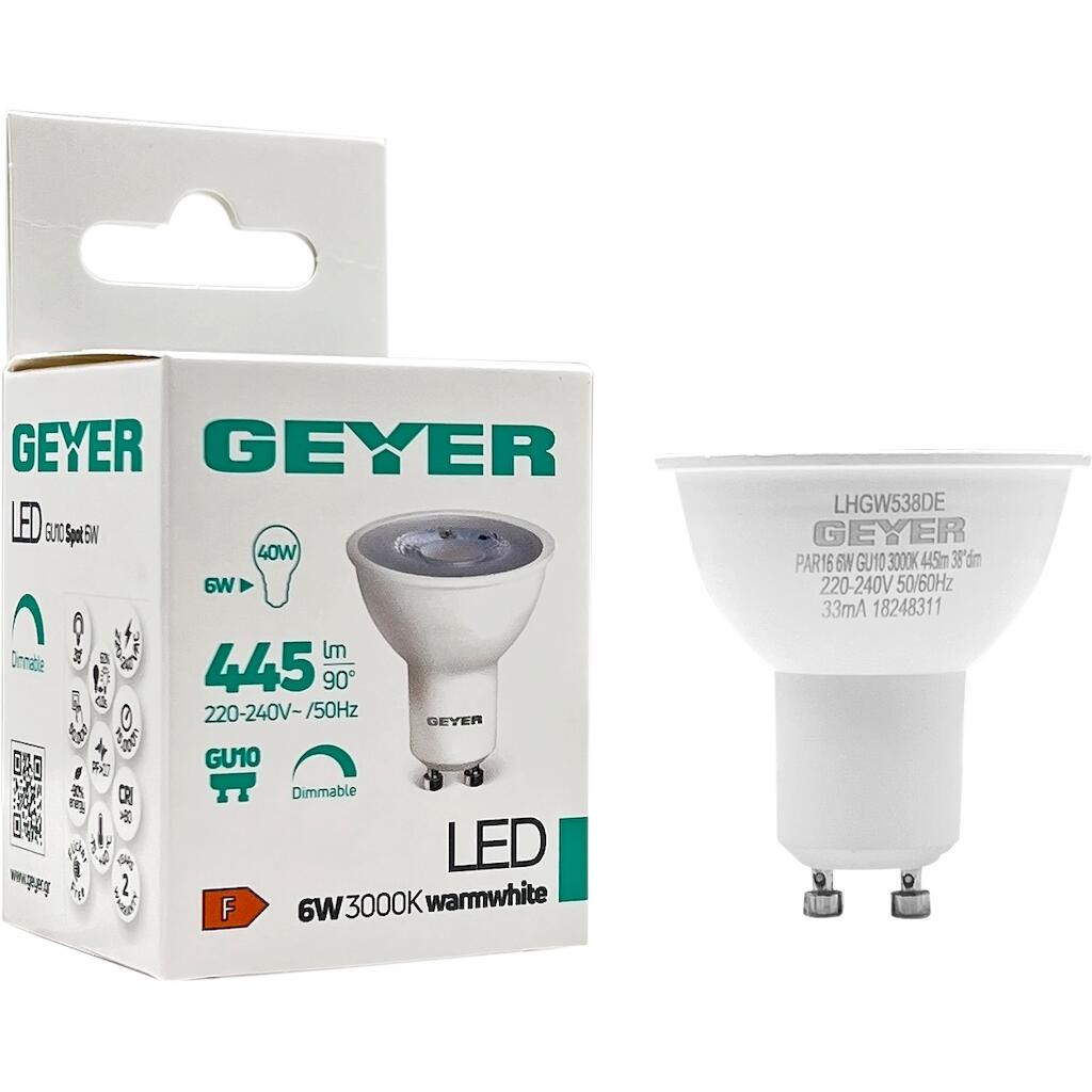 LED PAR16 6W GU10 3000K 445lm 38° dim
