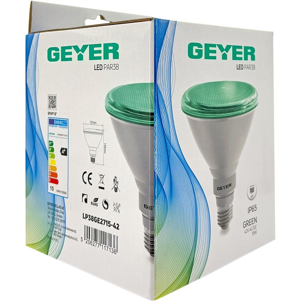 LED PAR38 15W E27 green 42V AC/DC IP65