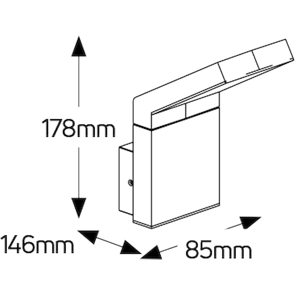 LED Wall light 6W 3000K 250lm 85×178 IP54 dark grey