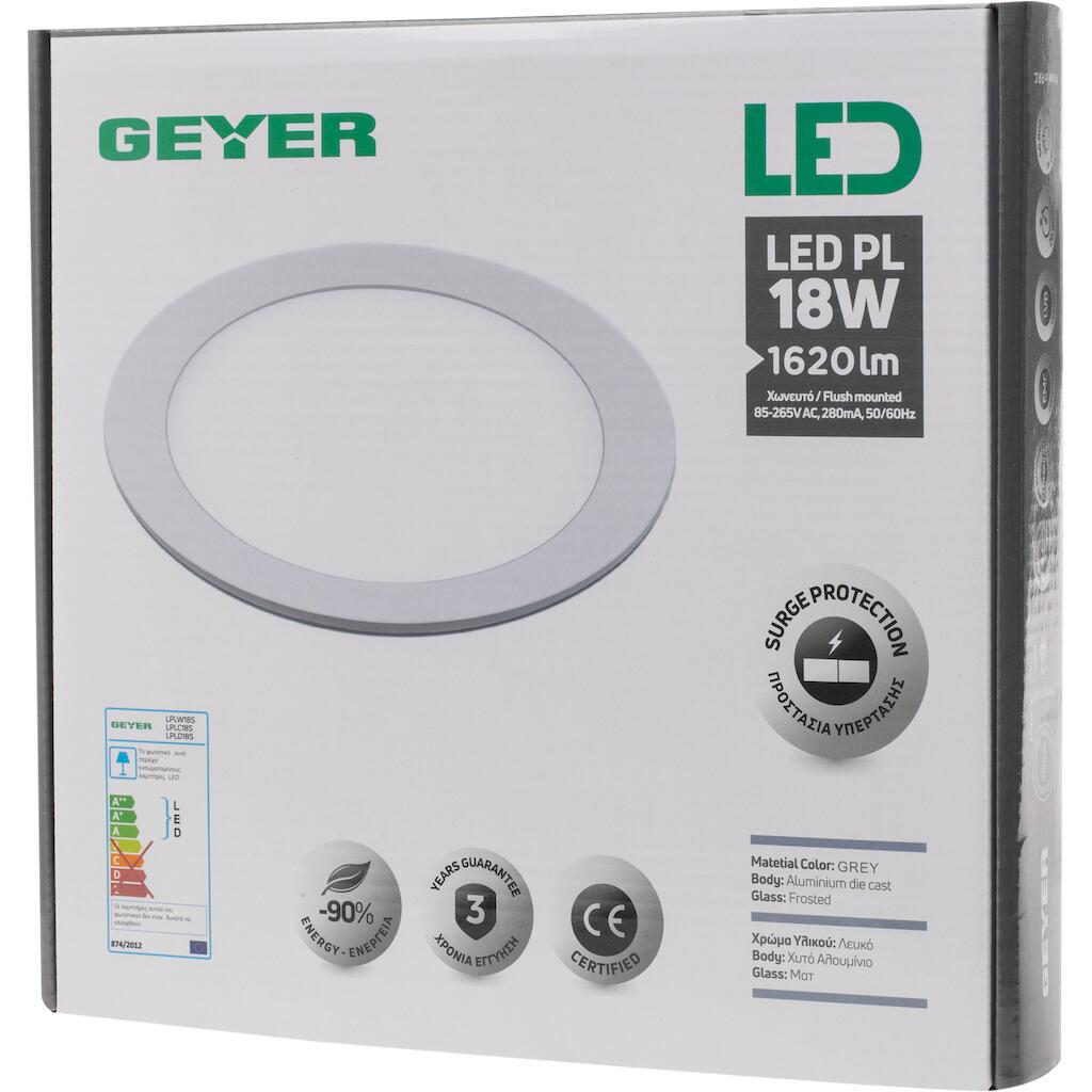 Recessed downlight 18W 6500K 1550lm Φ200mm grey
