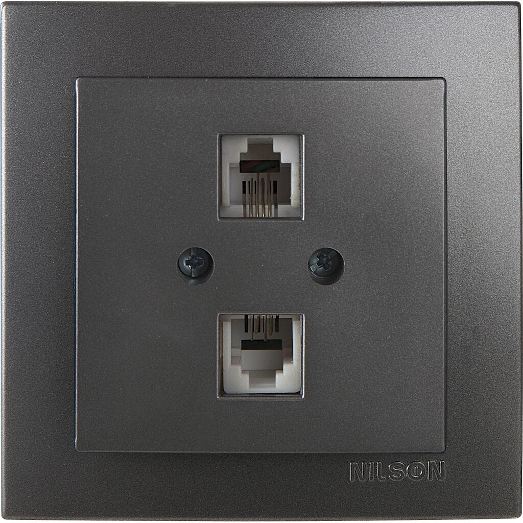 Ανθρακί πρίζα τηλεφώνου διπλή