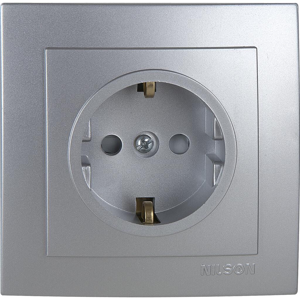 Ασημί πρίζα σούκο με προστασία