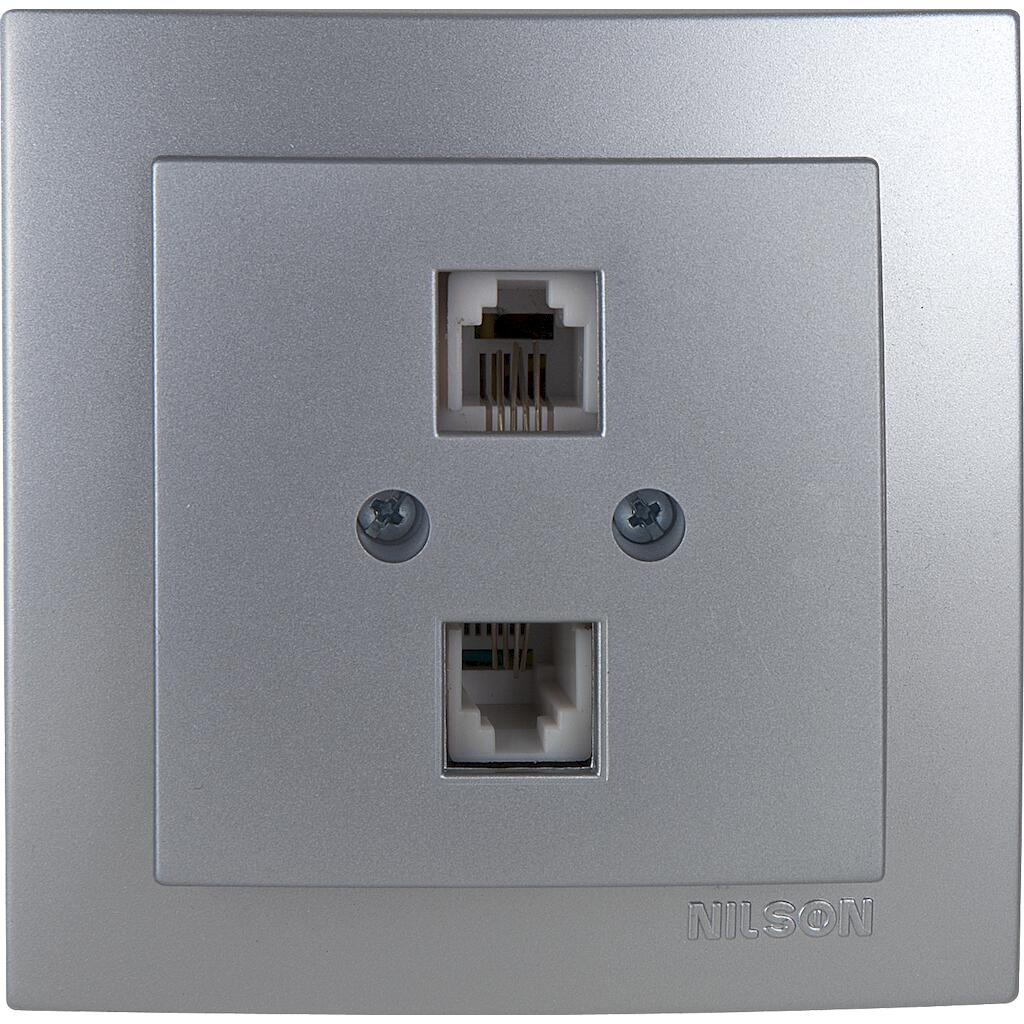 Ασημί πρίζα τηλεφώνου διπλή