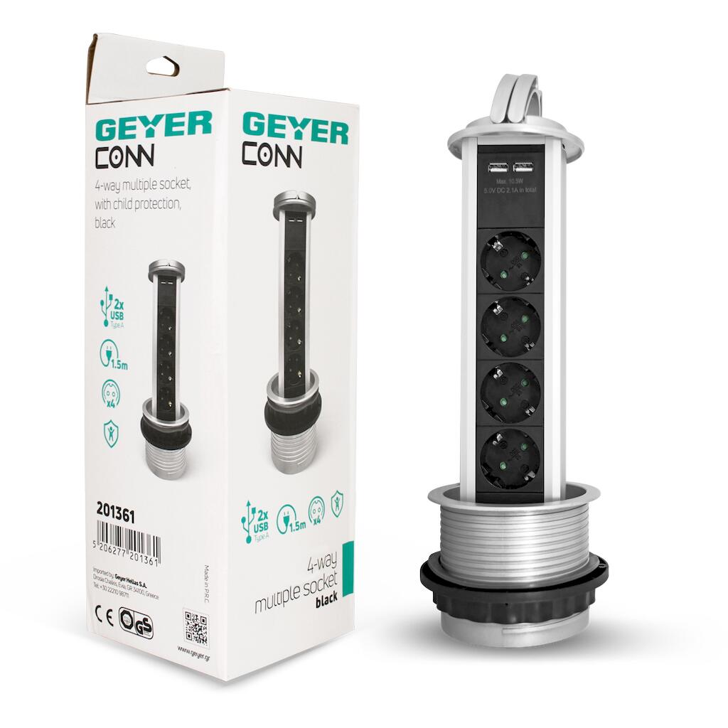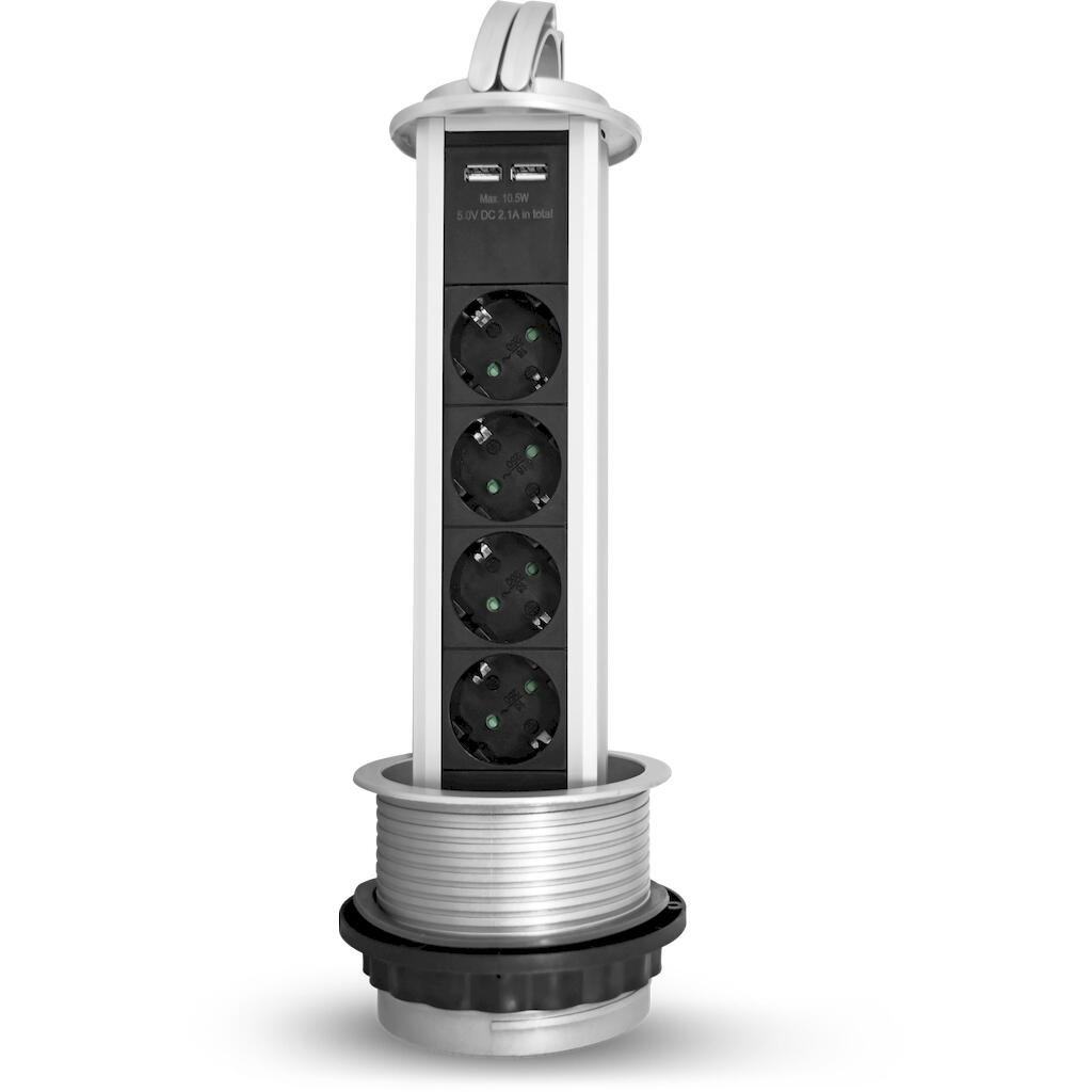 Επιτραπέζιο πολύπριζο 4 θέσεων, 2x USB