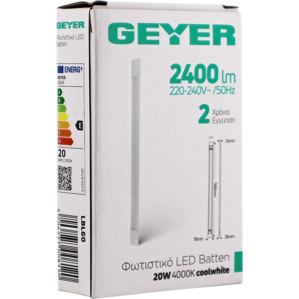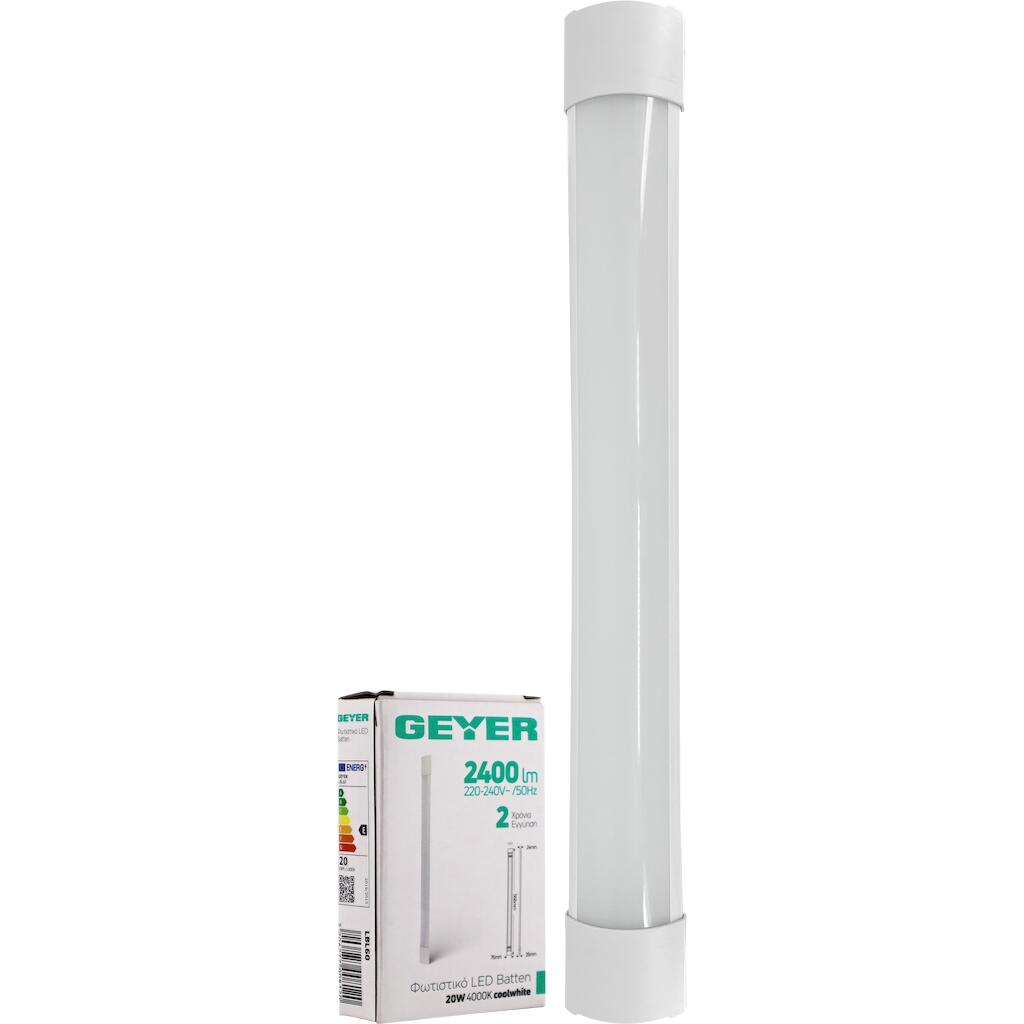 Φωτιστικό LED Batten. Προσφέρει ουδέτερο λευκό φως, κατάλληλο για χώρους εργασίας, για γενικό φωτισμό μεσαίων χώρων. Διαθέτει ισχύ 20W, μόνο για εσωτερικούς χώρους, εγγύηση 2 χρόνια.