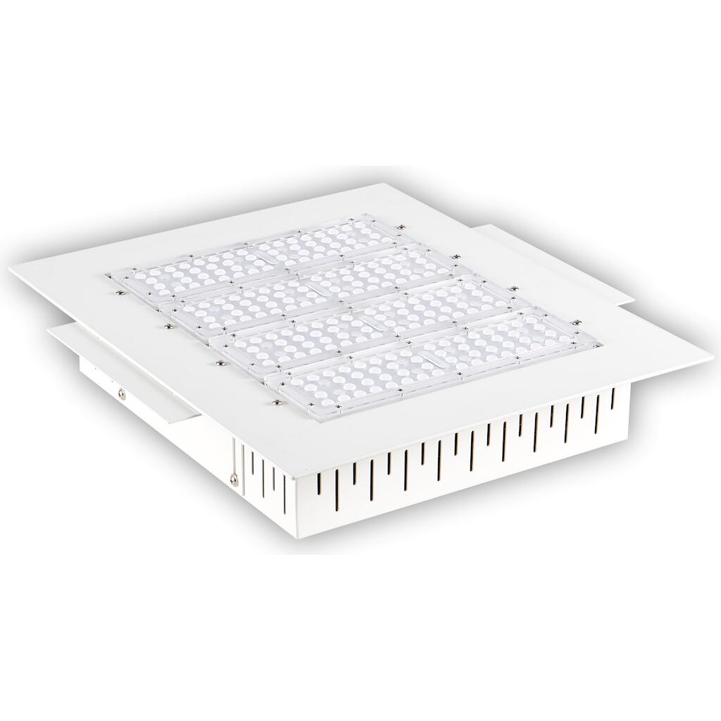 Φωτιστικό LED βενζινάδικου. Προσφέρει ουδέτερο λευκό φως, κατάλληλο για χώρους εργασίας, για ισχυρό φωτισμό μεγαλύτερων χώρων. Διαθέτει ισχύ 200W, κατάλληλο για εξωτερικούς χώρους με αυξημένη προστασία από νερό και σκόνη, τάση λειτουργίας 85-265VAC.