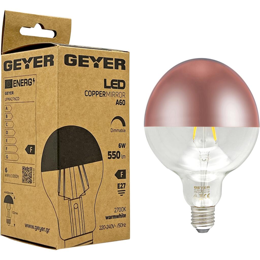 Λάμπα LED Αντεστραμμένου καθρέφτη χαλκός A60 E27 6W 2700K 550lm dim