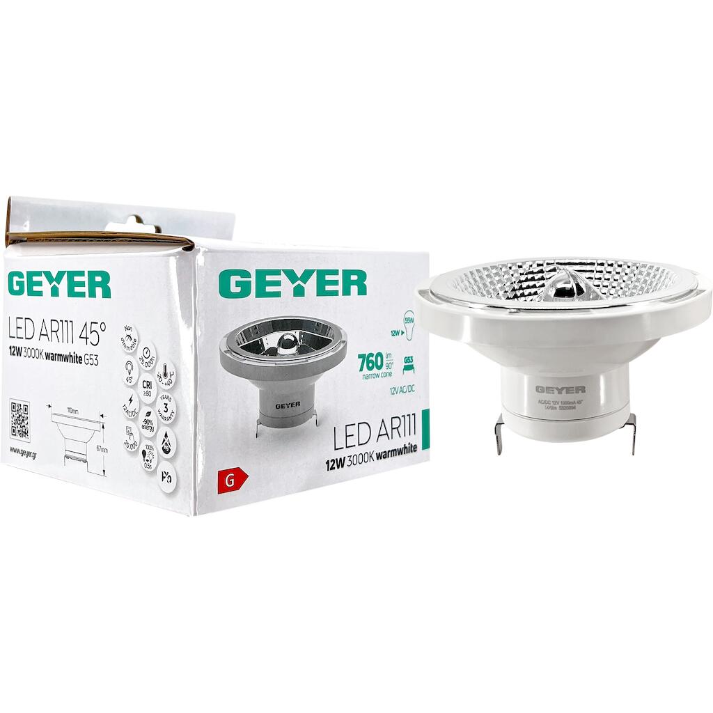 Λάμπα LED AR111 12W G53 3000K 760lm 45° 12V AC/DC