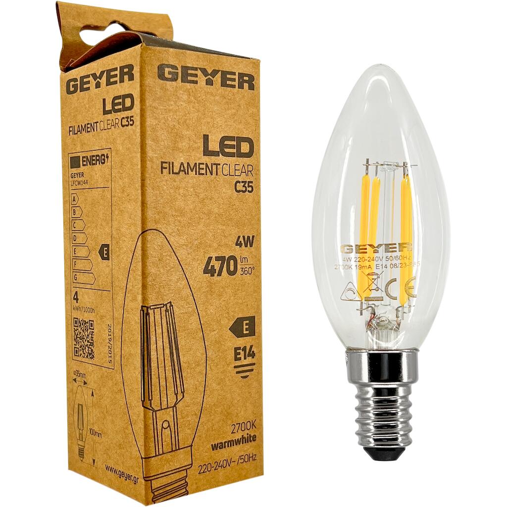 Λάμπα LED Κερί Filament που προσφέρει ζεστό λευκό φως, ιδανικό για οικιακούς χώρους, για συμπληρωματικό φωτισμό μικρών χώρων ή φωτιστικών. Διαθέτει διάρκεια ζωής 15.000h.