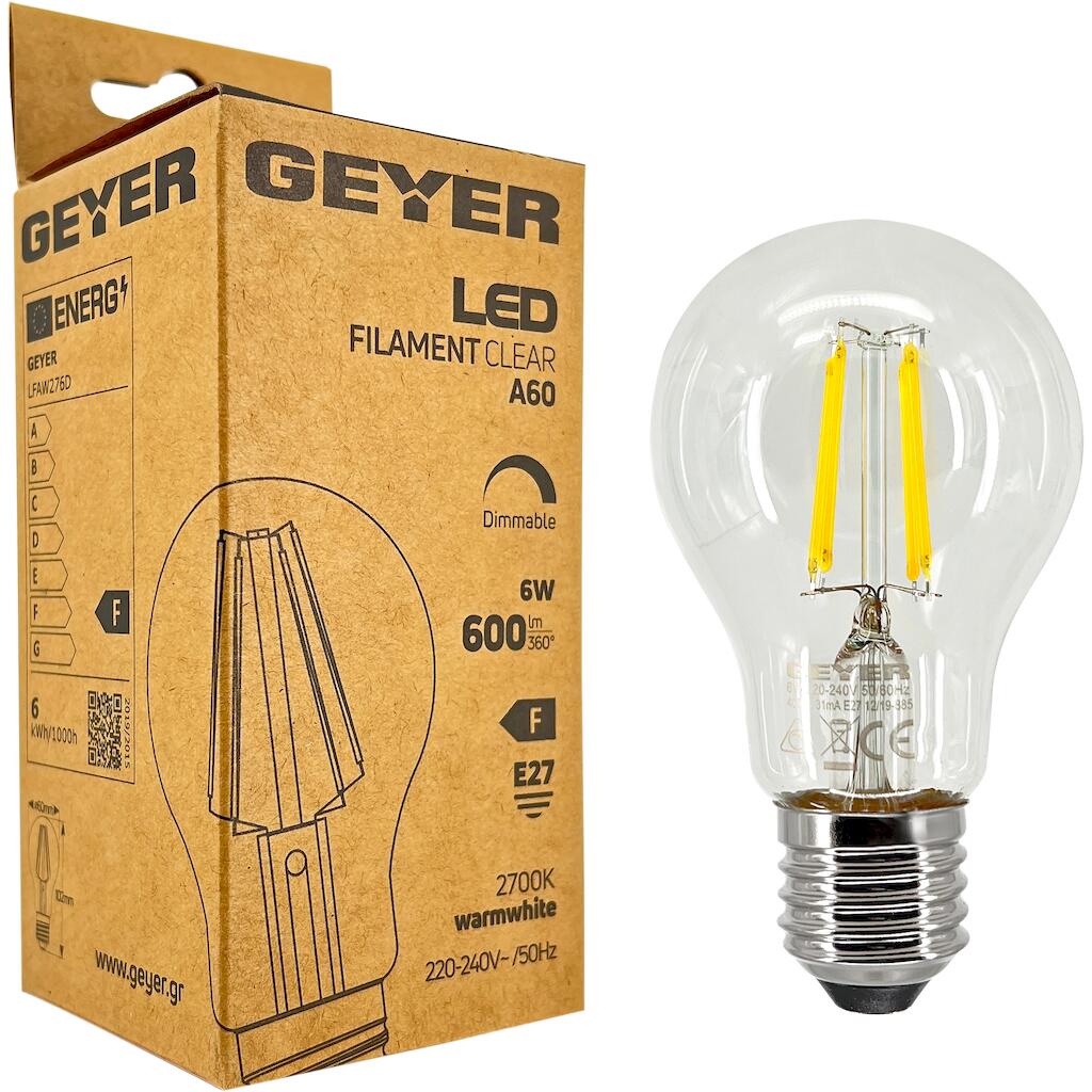Λάμπα LED Κλασική Filament A60 6W E27 2700K 600lm dim