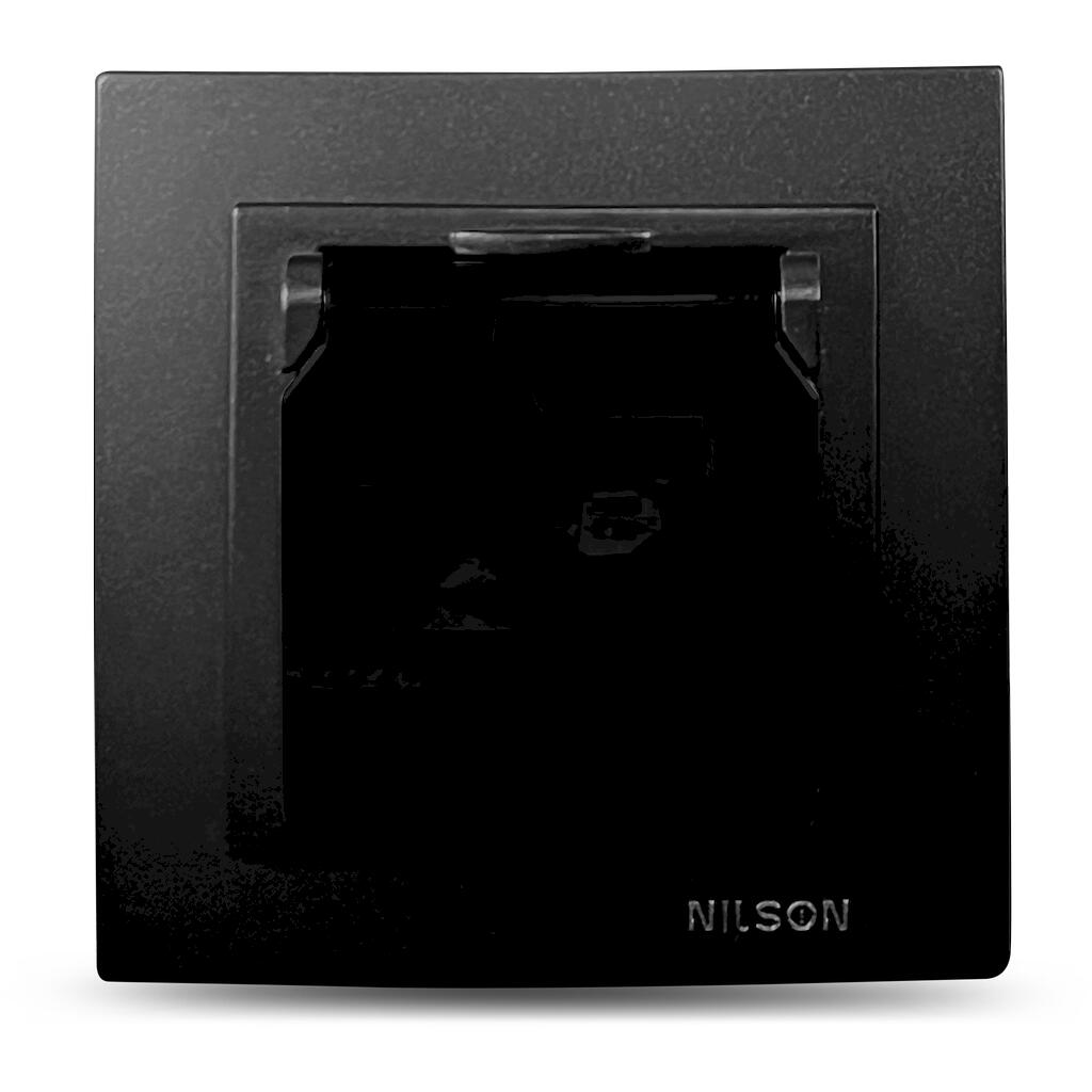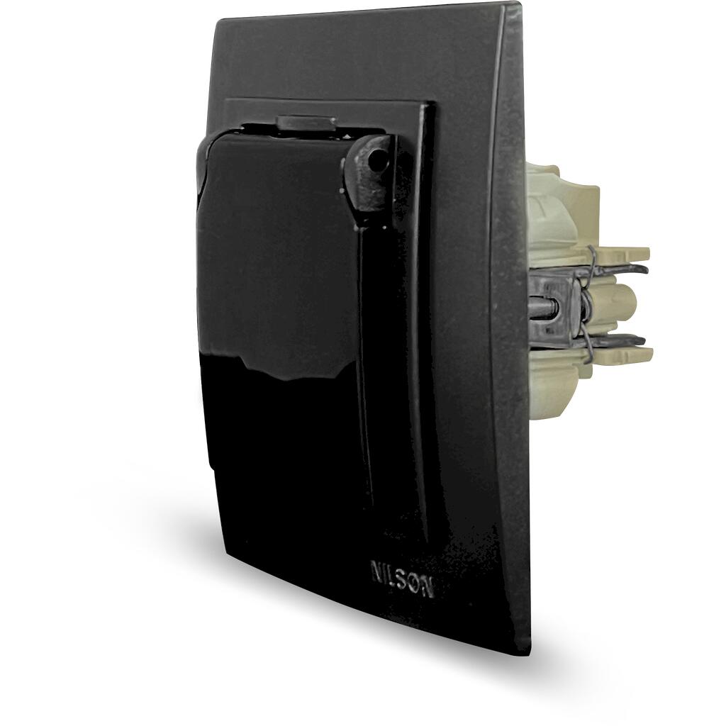 Μαύρη ματ πρίζα σούκο με προστασία και καπάκι