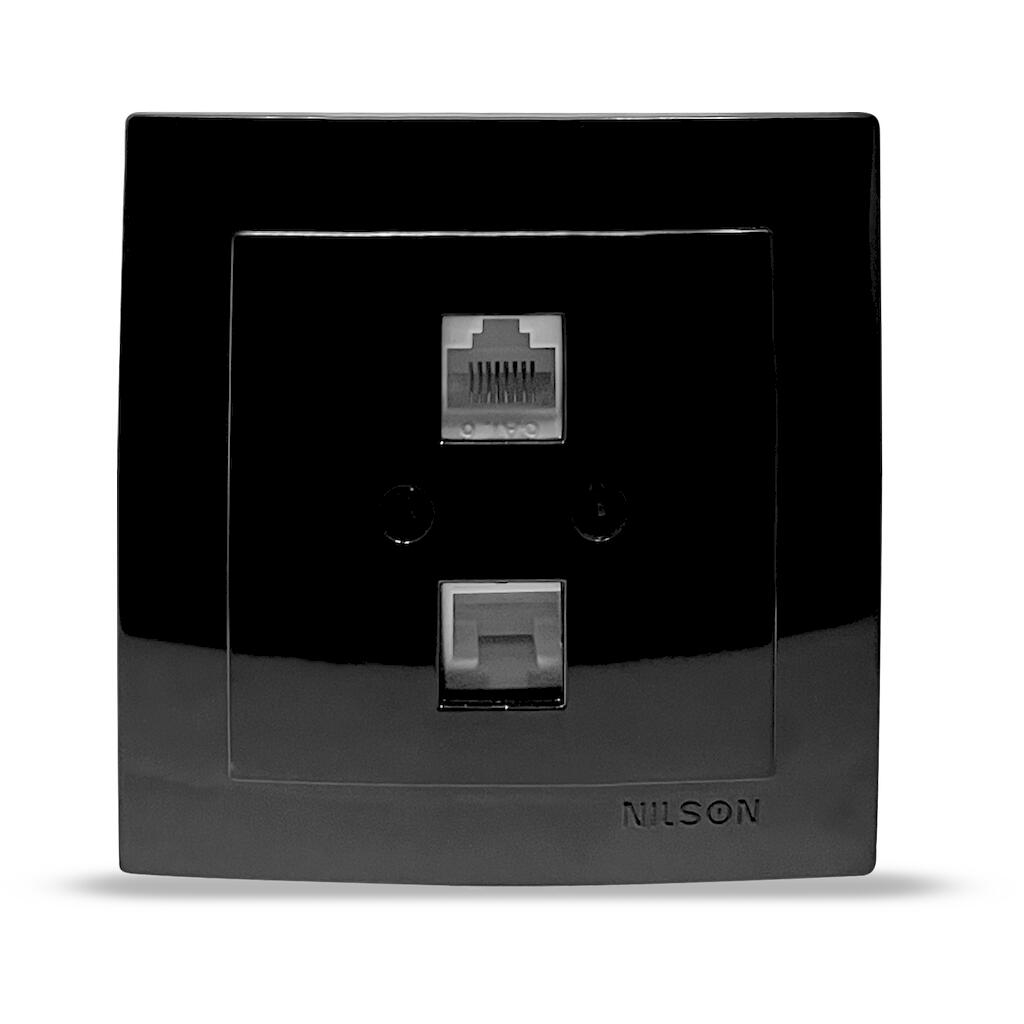 Μαύρη πρίζα δικτύου CAT5 διπλή