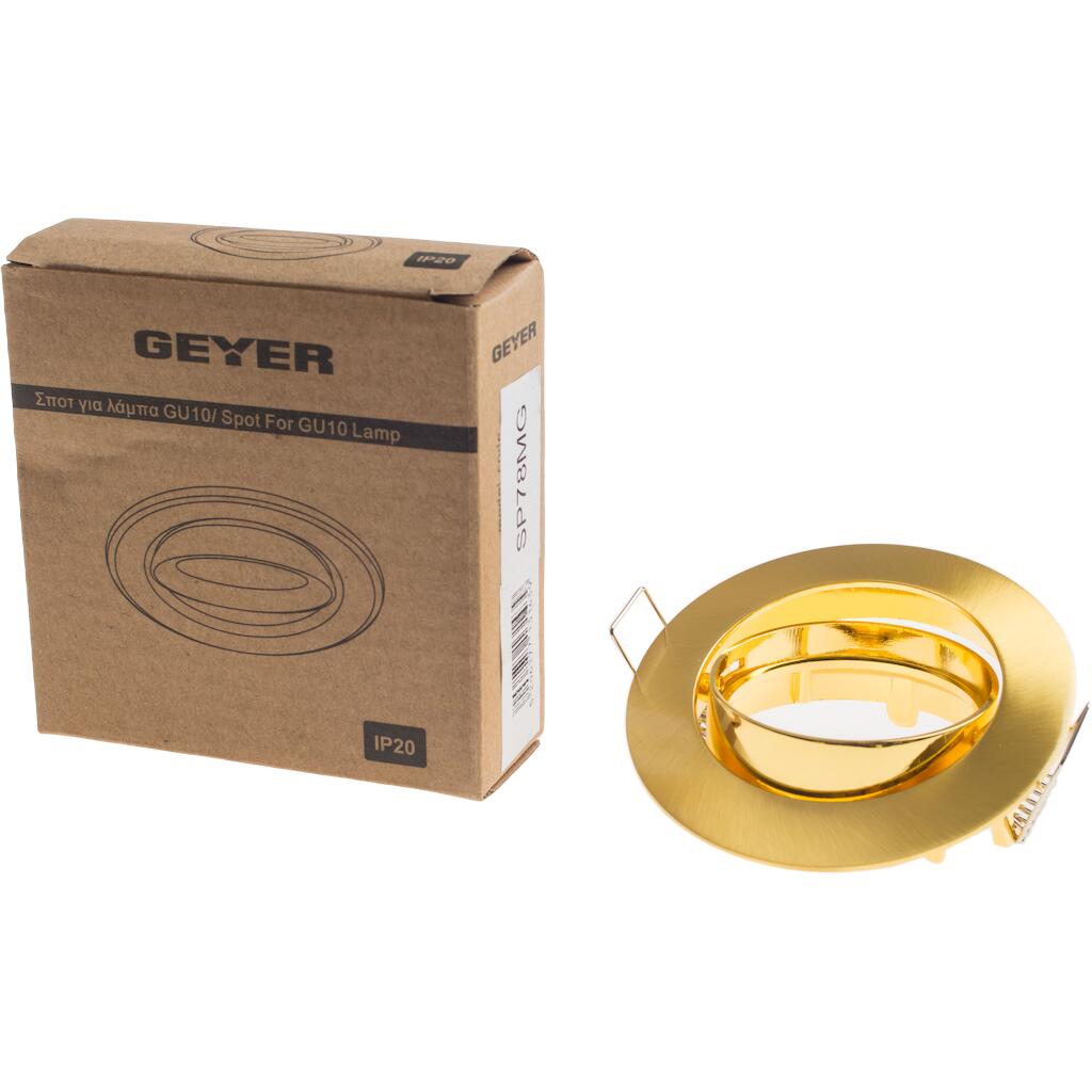 Ρυθμιζόμενο στρογγυλό σποτ GU. Κατάλληλο για χρήση σε ηλεκτρολογικές εγκαταστάσεις.