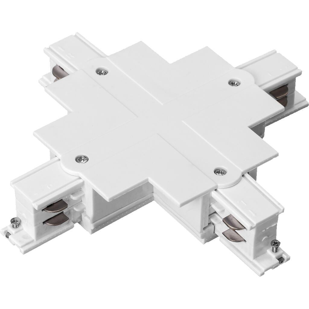 Σύνδεσμος Χ χωνευτός για ράγα τριφασική λευκός. Διαθέτει εγγύηση 2 Χρόνια.