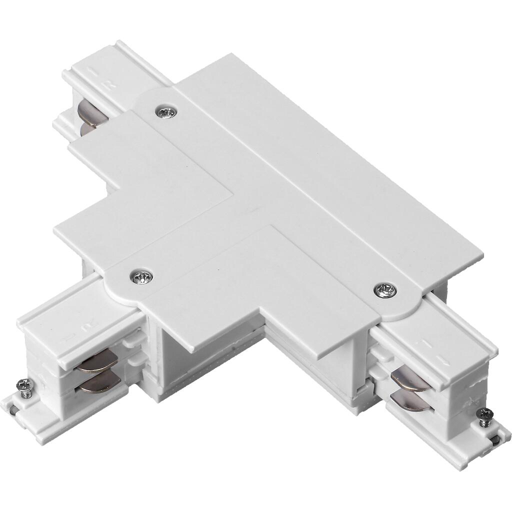 Σύνδεσμος Τ χωνευτός για ράγα τριφασική λευκός. Διαθέτει εγγύηση 2 Χρόνια.