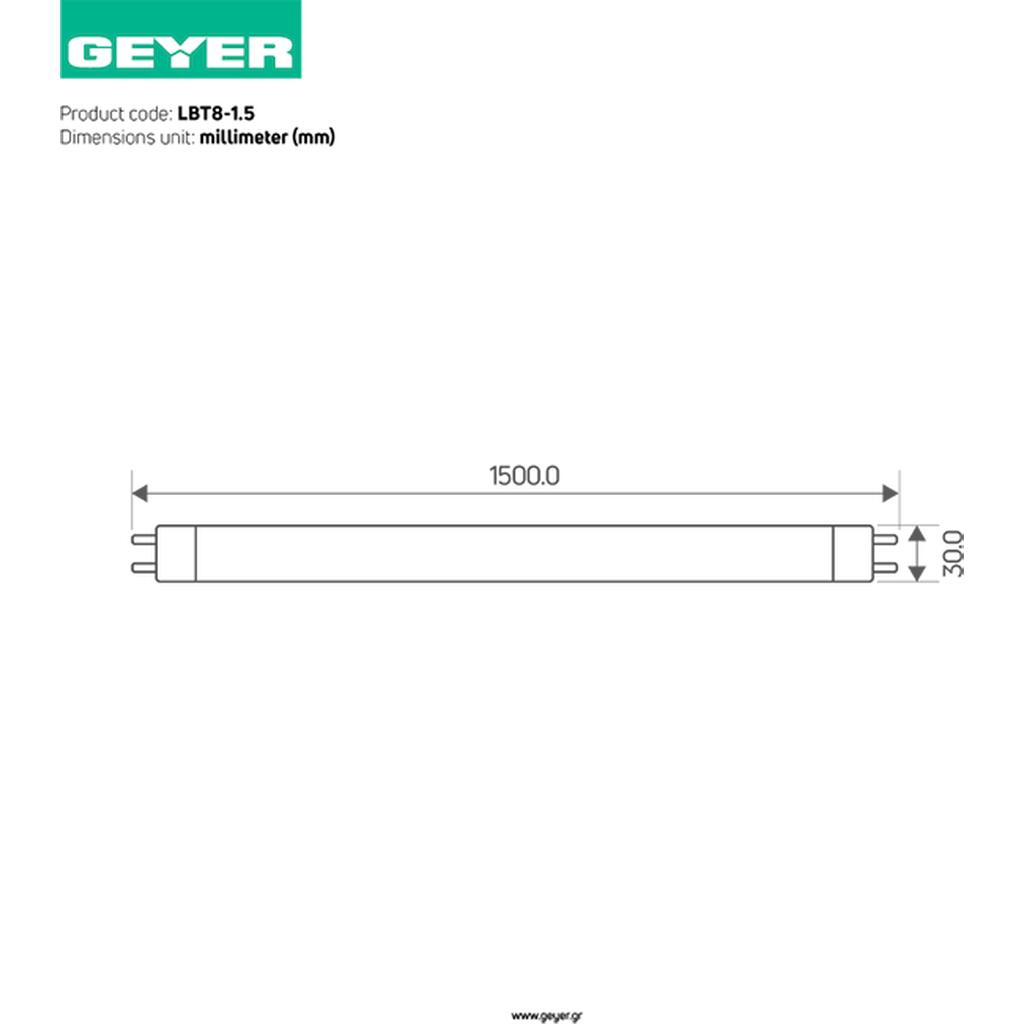 T8 Φωτιστικό LED 25W 4000K 2300lm 1.5m IP20