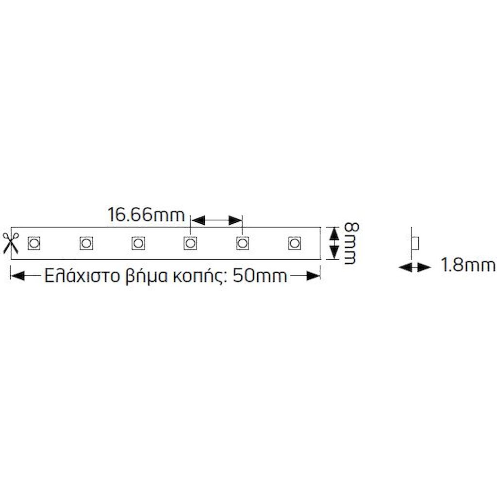 Ταινία LED Premium. Προσφέρει ζεστό λευκό φως, ιδανικό για οικιακούς χώρους, μεσαία δέσμη για ισορροπημένο φωτισμό. Διαθέτει ισχύ 4.8W, κατάλληλο για εξωτερικούς χώρους με αυξημένη προστασία από νερό και σκόνη, τάση λειτουργίας 12V.